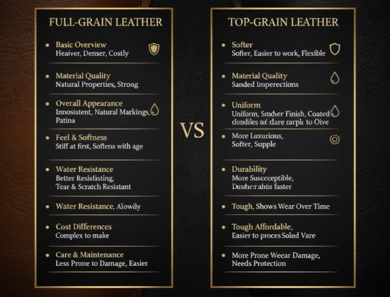 | Features | Full-Grain Leather | Top-Grain Leather |