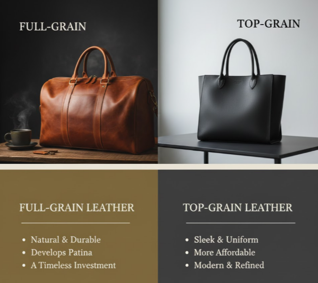 Knowing the key differences between top-grain and full-grain leather is crucial before shopping for bags, jackets, or other leather accessories.
