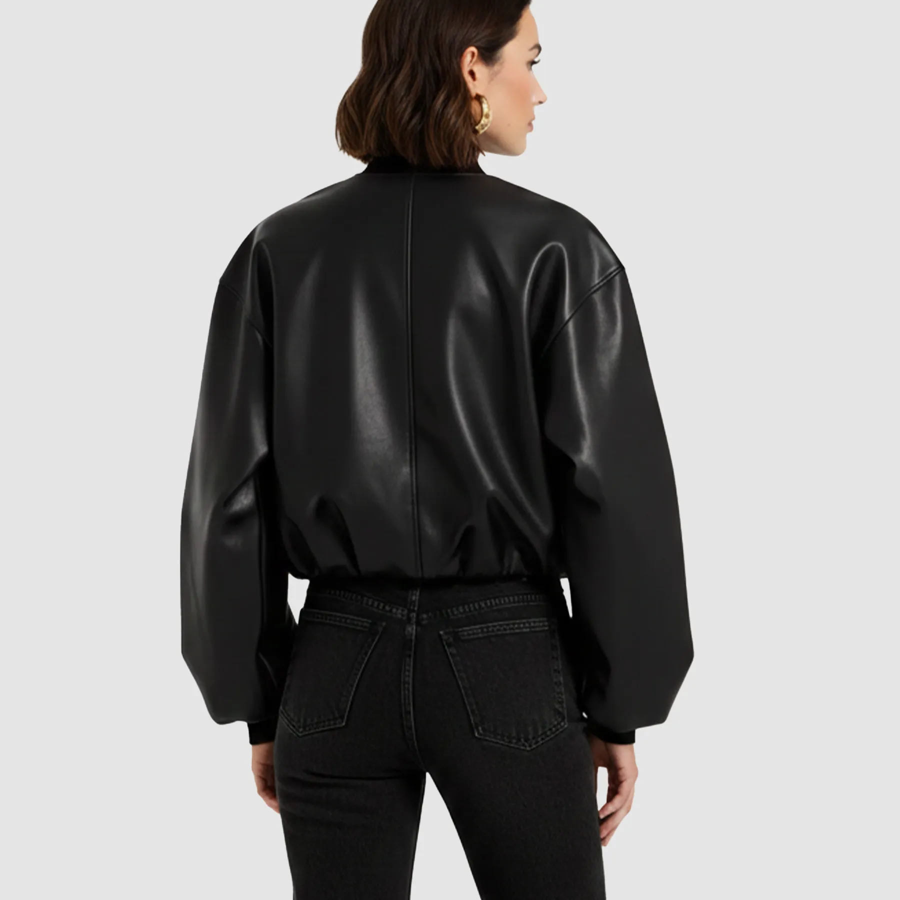 Oversized leather bomber fit with a cropped cut—effortlessly cool and easy to layer