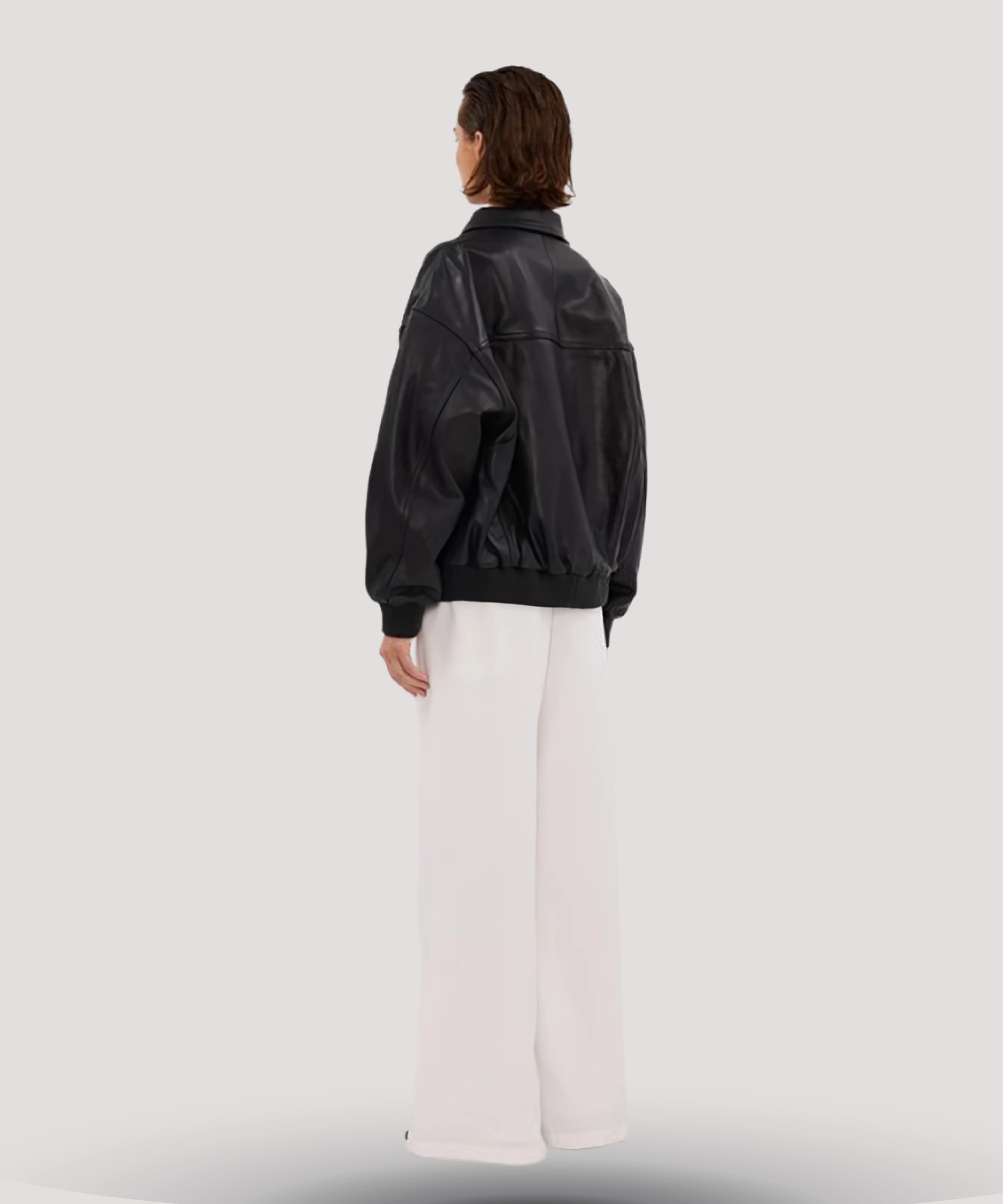 The oversized leather bomber jacket wraps you up in that perfect mix of comfort and edge. I’d say it’s ideal for those in-between seasons when the weather can’t make up its mind. Throw it over a hoodie or a tee it plays nice either way. The leather bomber jacket black finish gives you that lived-in vibe without looking like you’re trying too hard.