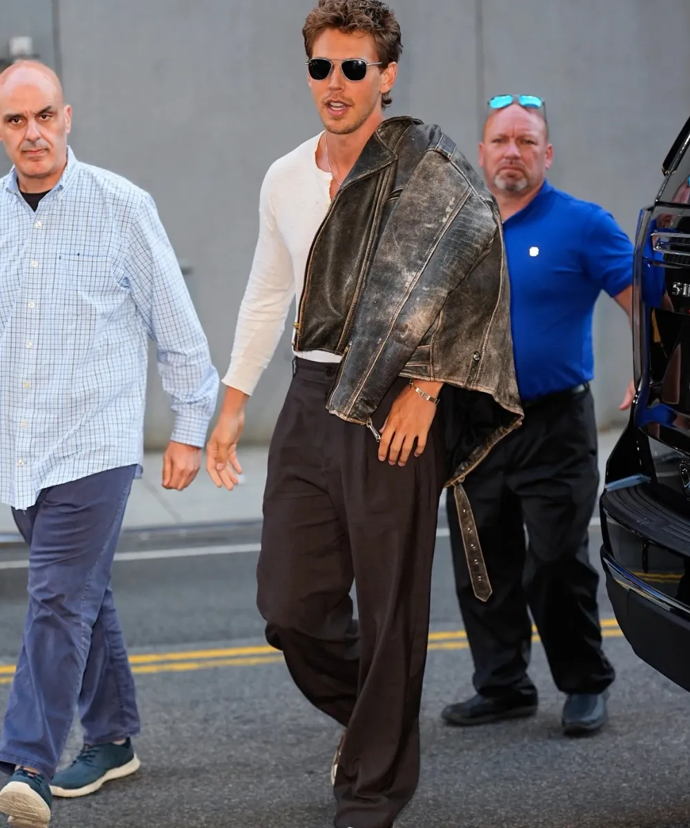 Be the first to review “Austin Butler Distressed Brown Leather Bomber Jacket” Cancel reply