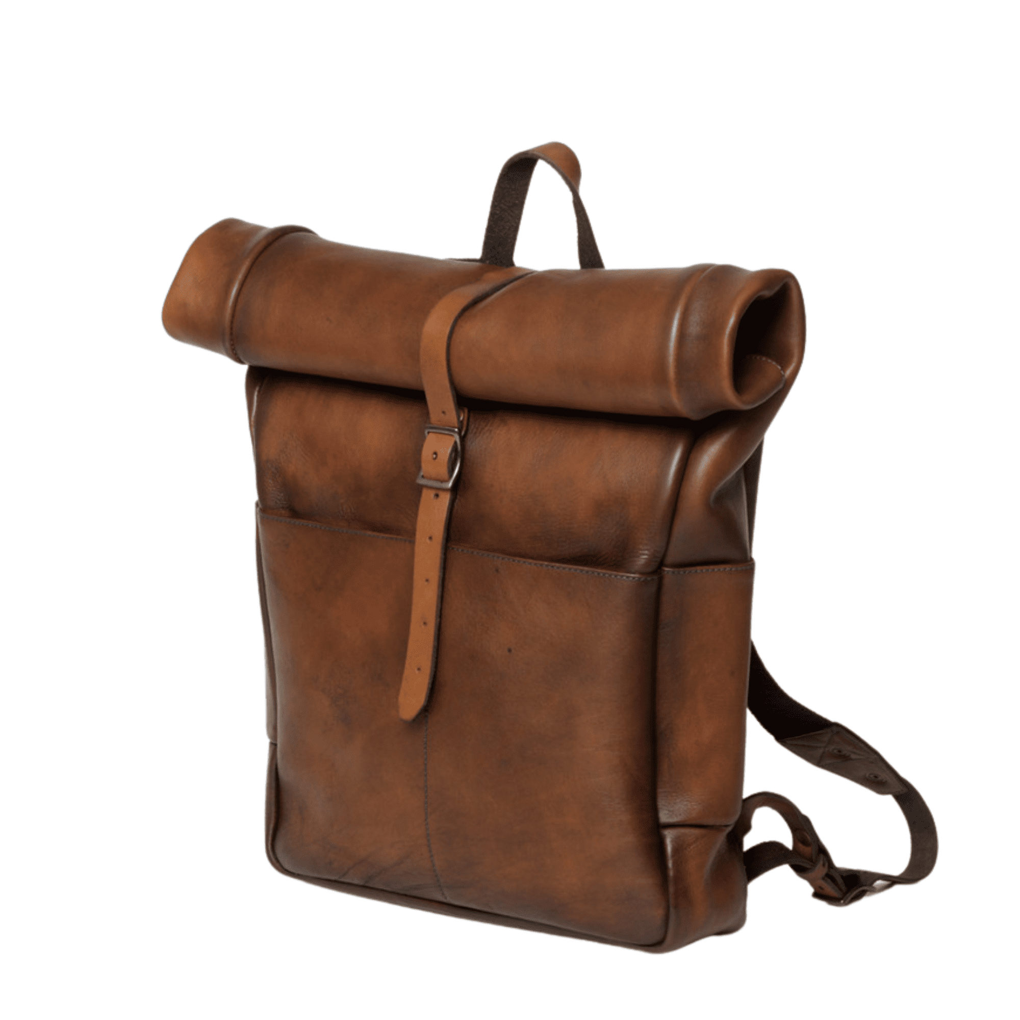 Embrace the spirit of adventure with the Rolltop Backpack, where functionality meets timeless elegance. Crafted from premium full-grain leather, this backpack showcases a sophisticated design that transitions seamlessly from the office to the great outdoors. Its rich brown or vintage brown hue develops a stunning patina over time, making each bag uniquely yours.