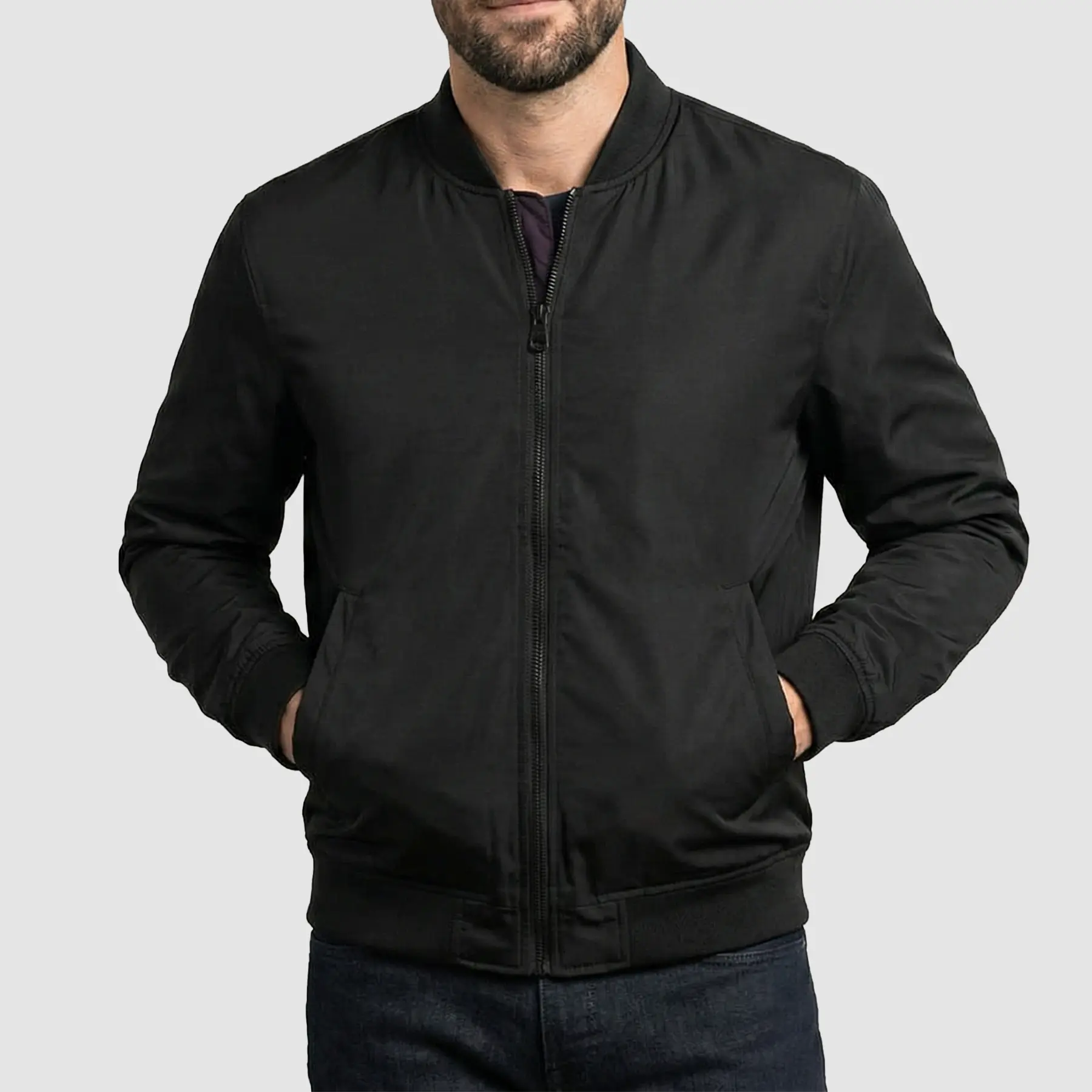 If you’re building a casual look, a black bomber jacket men’s piece like this is a reliable move. Throw it over a hoodie, and the style feels relaxed. Pair it with a plain tee, and the outfit looks clean. In my opinion, the best black bomber jacket outfit men pieces are simple and confident.